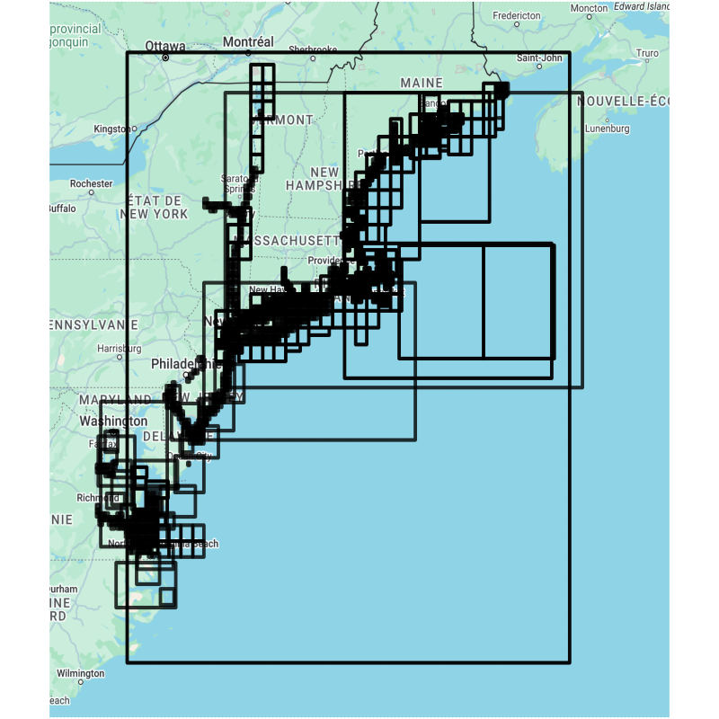 Pack USA Nord Est établi à partir de cartes vectorielles S57 de la NGA/NOAA©. Vous pouvez consulter la liste des cartes incluses dans ce document: Liste des cartes incluses