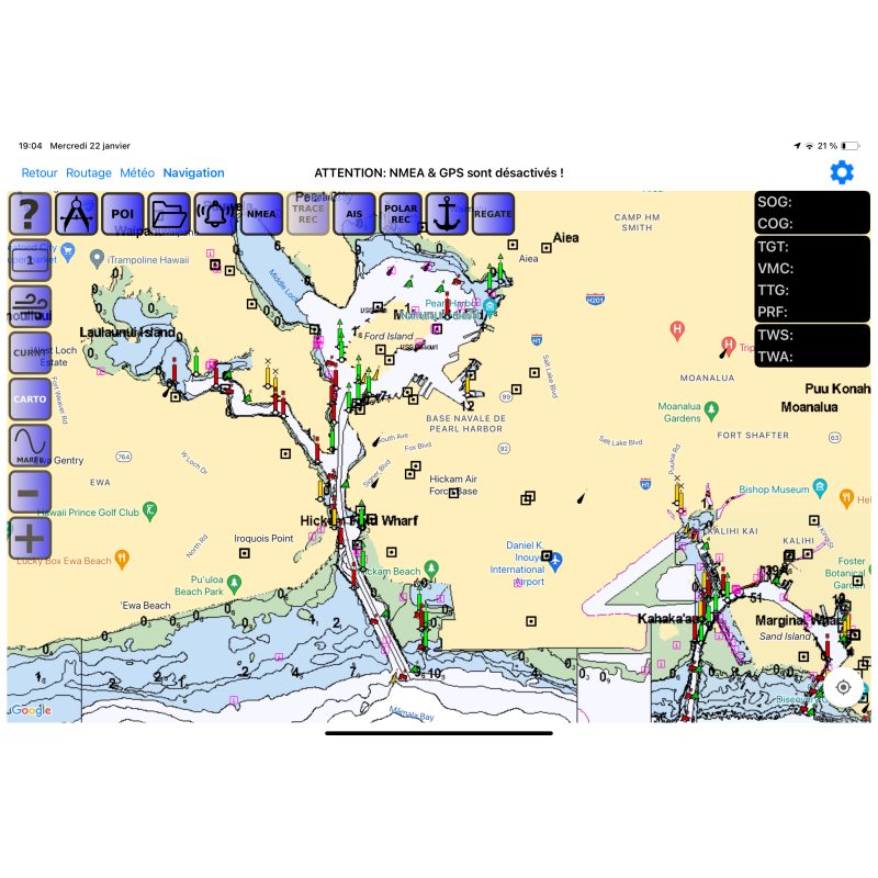 Pack USA Hawaii établi a partir de cartes vectorielles S57 de la NGA/NOAA©. Vous pouvez consulter la liste des cartes incluses dans ce document: Liste des cartes incluses